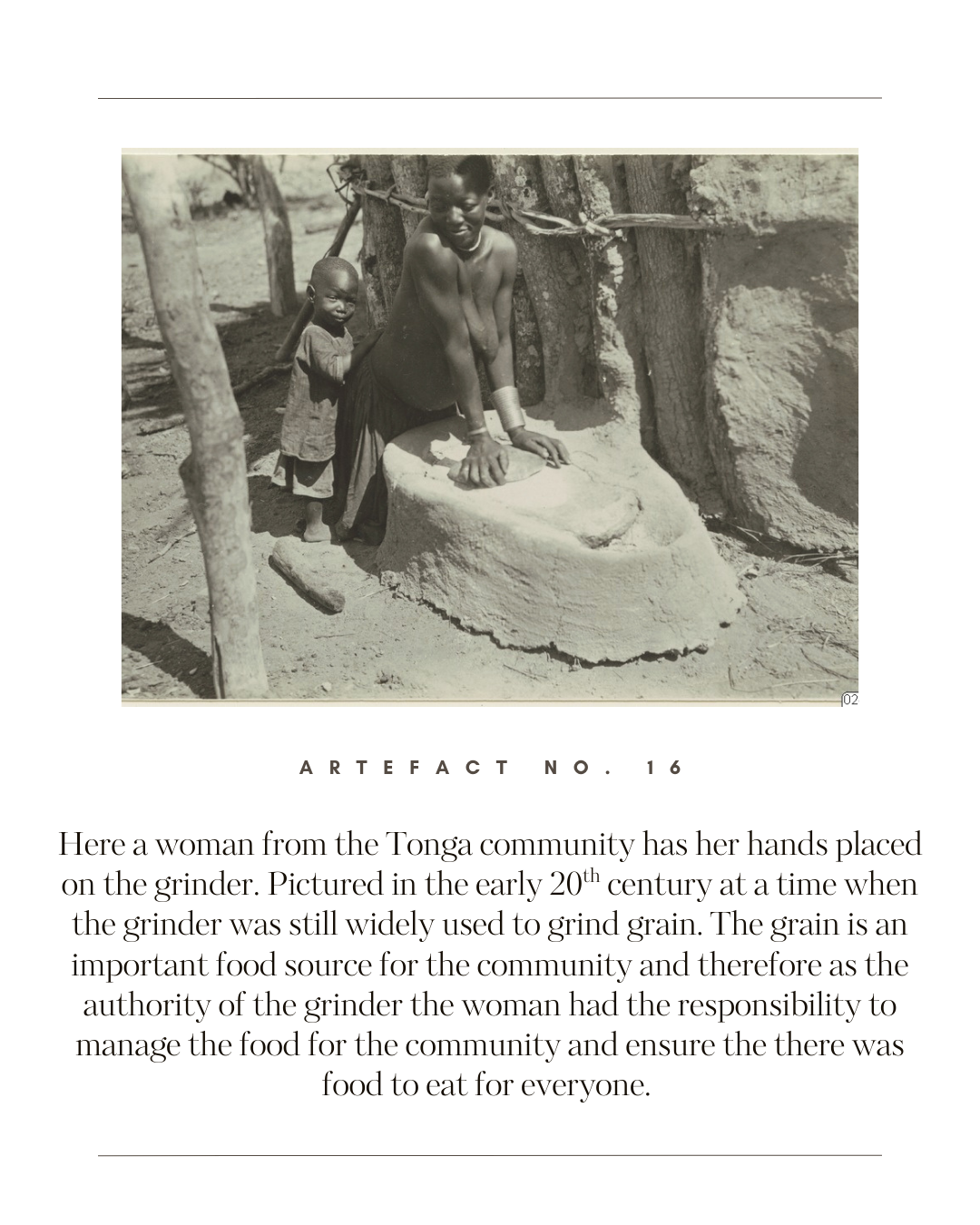 Beyond a kitchen tool, the grinding stone symbolised women’s authority in food security and production. Unique to women, it wasn’t passed down and instead placed on their graves as a headstone, honouring their lifelong contributions. The large stone represented the mother, the smaller, the child. This highlighted women's power of nurturing and reproduction.